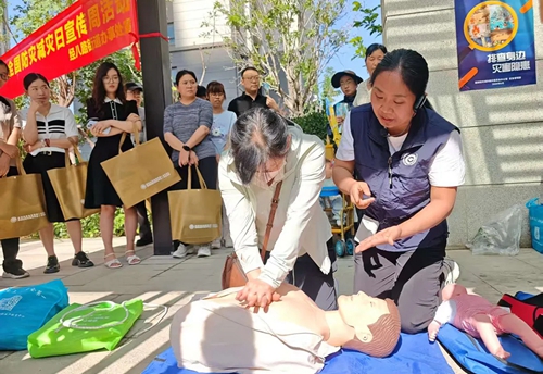 在互動體驗環(huán)節(jié),工作人員展示結(jié)繩演練并指導(dǎo)實操,保障群眾掌握基本結(jié)繩逃生技能?,F(xiàn)場還設(shè)置了仿真人體模型,醫(yī)護人員指導(dǎo)群眾進行心肺復(fù)蘇操作練習(xí),同時為群眾演示海姆立克急救法操作流程。